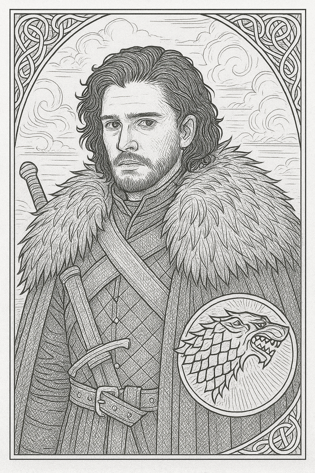 Jon Snow Printable Coloring Page | Game of Thrones-Inspired Art